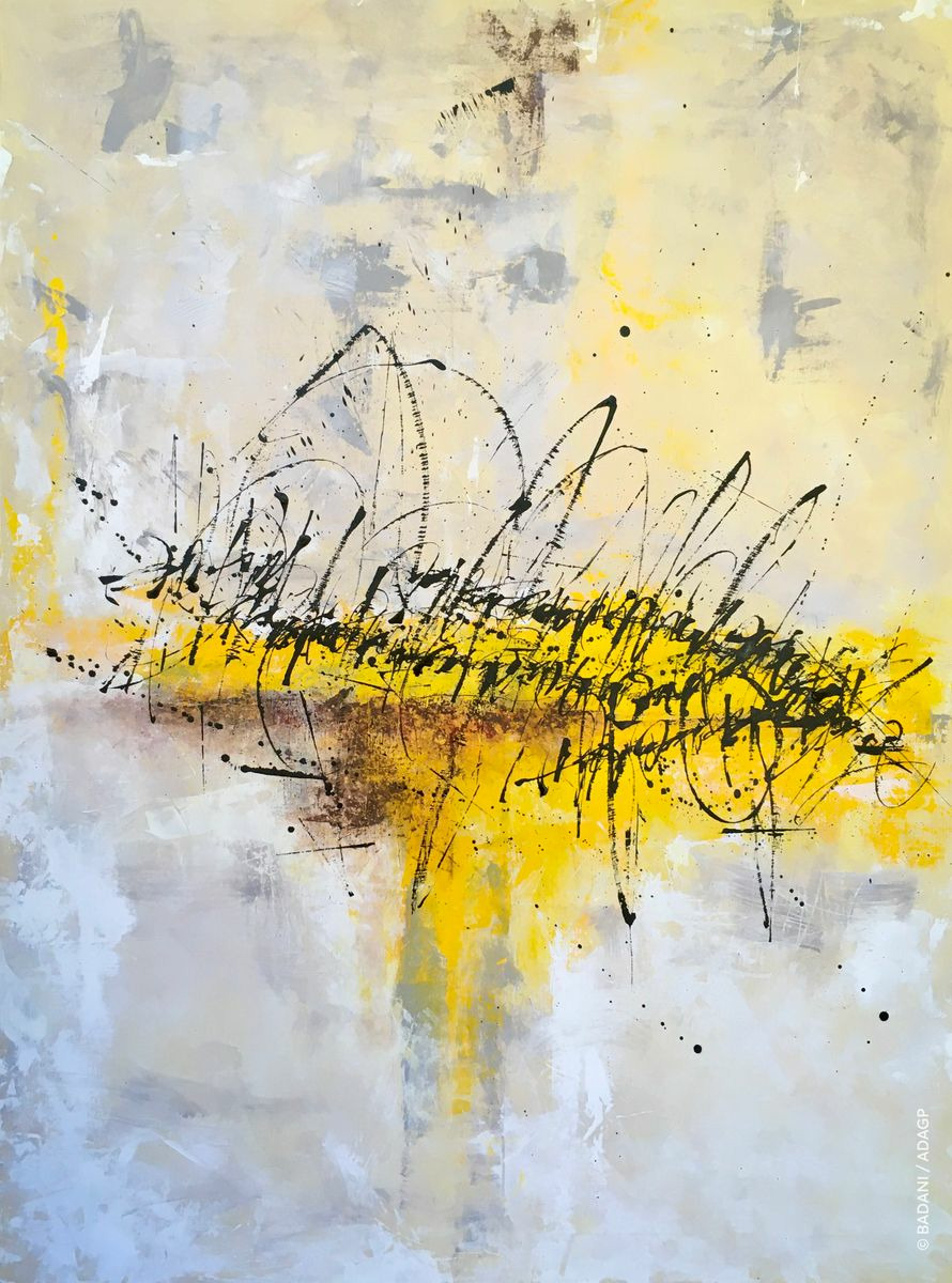 Acrylique sur toile de lin - Format 97x130 cm. Œuvre unique. Vernis satiné. Cache clous en bois. Certificat d'authenticité de l'œuvre.