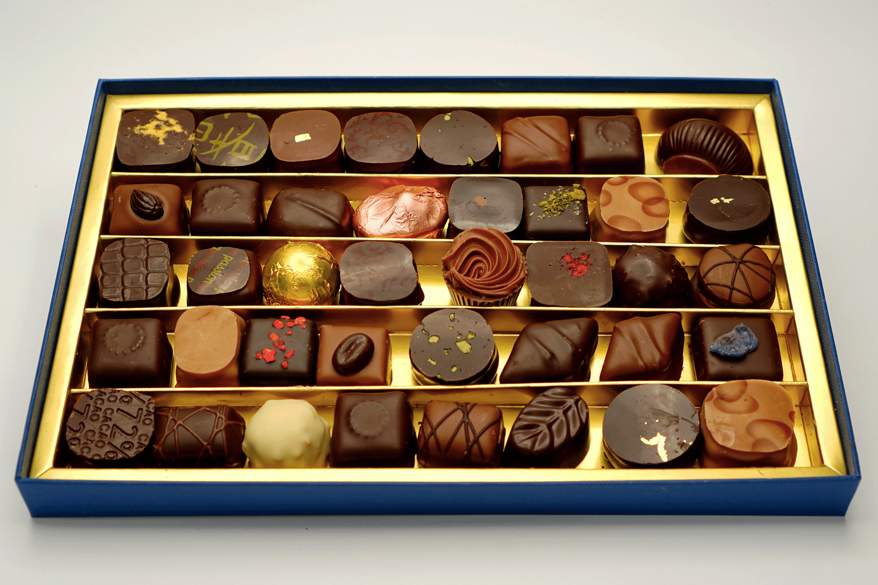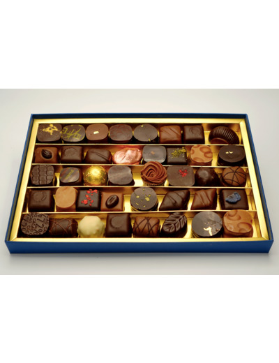 Un assortiment de 40 chocolats soigneusement sélectionnés pour vous par l'équipe parmi notre collection de chocolats noirs, lait, pralinés et ganaches.