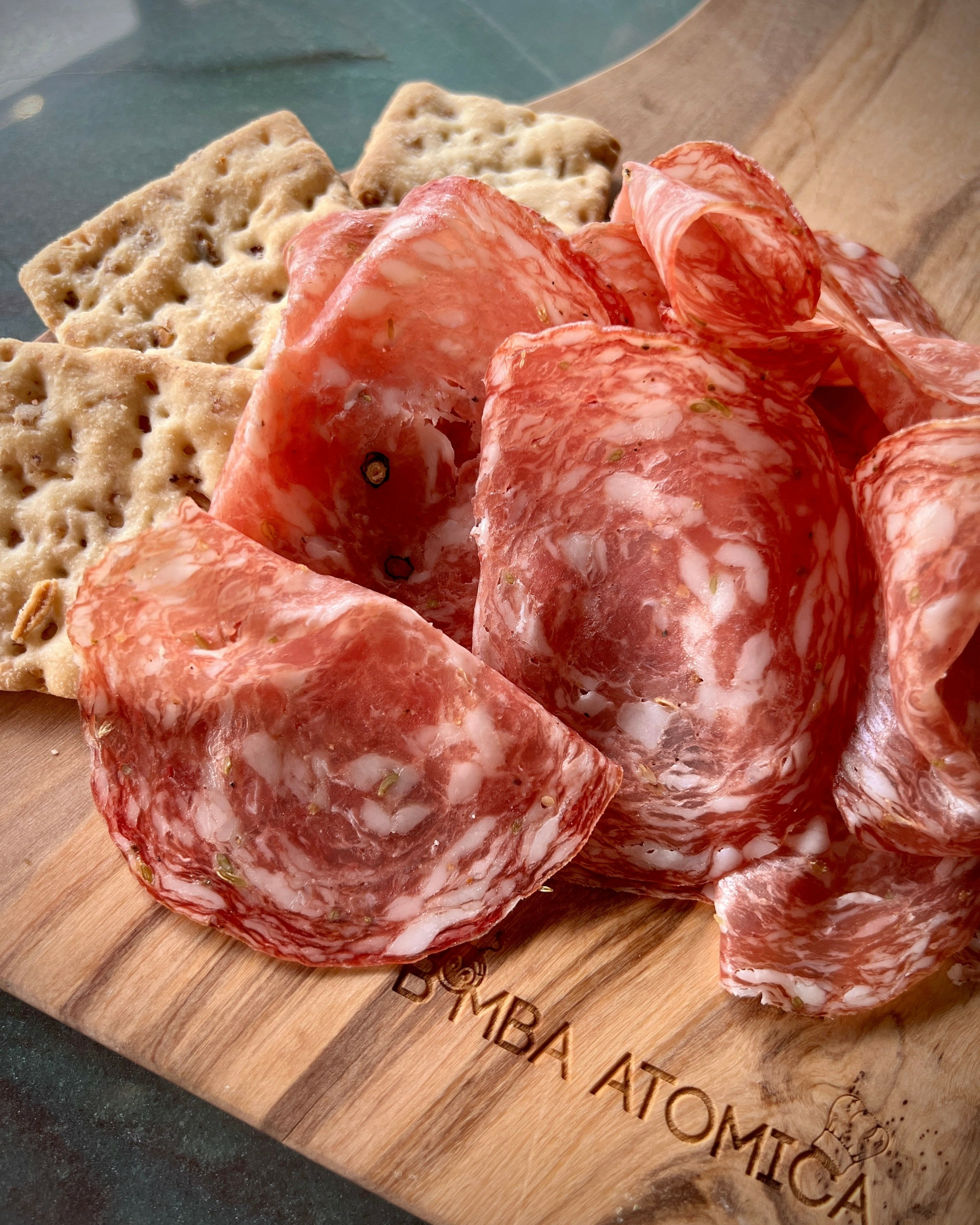 La Finocchiona IGP est une charcuterie italienne emblématique de la Toscane, reconnue pour sa saveur unique et son parfum distinctif de fenouil. Ce salami au fenouil offre une texture douce et un goût authentique, on l’adore.