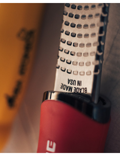 La râpe à parmesan ou zesteur de Microplane, est l'ustensile ultime pour râper finement fromages, zestes d'agrumes, épices, chocolat et bien plus encore. Grâce à ses lames ultra-affûtées en acier inoxydable, elle garantit une coupe précise et sans effort, préservant les arômes et rehaussant les saveurs. Son manche ergonomique et ses pieds anti-rayures en font un outil indispensable pour les professionnels comme les amateurs.