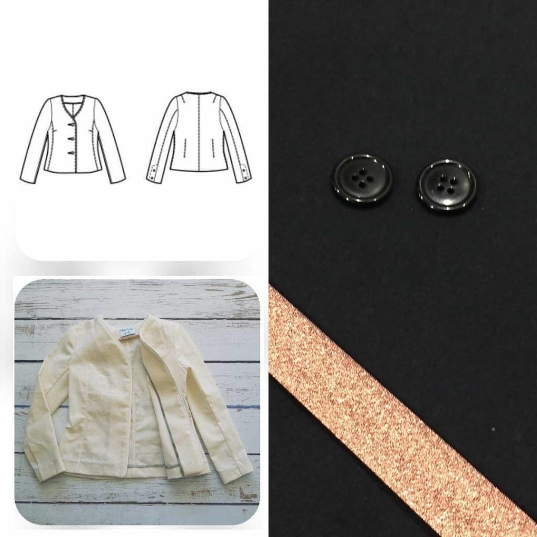 Le kit contient tout ce qu'il faut pour coudre la veste Armélia du livre "Christine Charles – Passez votre CAP couture avec Artesane.com":