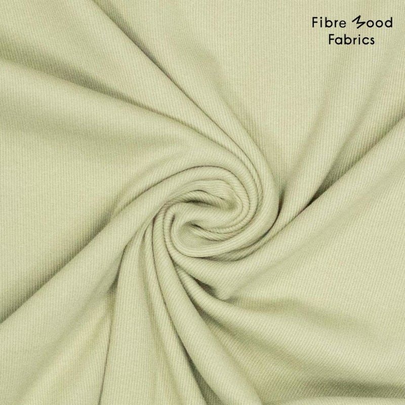 Tissu bord cote 2x2 en couleur vert clair assez épais et stable.