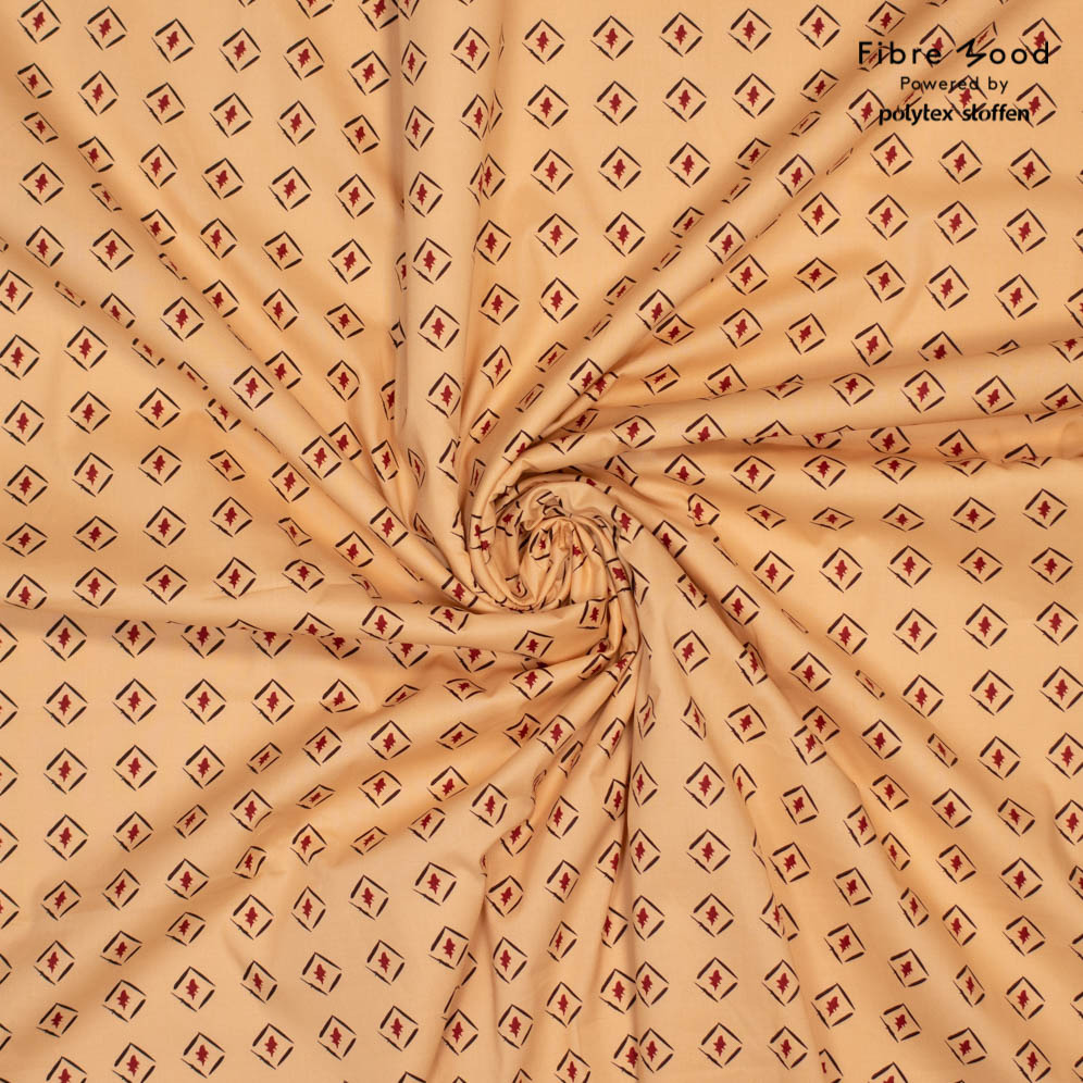 Fibre Mood - Tissu Popeline de Coton "Hariette" Imprimé Losange Noir et Bordeaux sur un Fond Beige