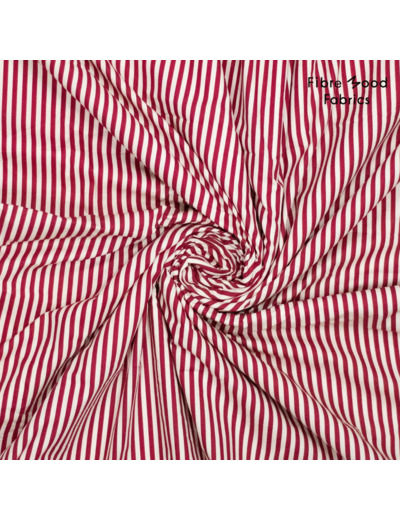 Tissu popeline 100% coton à l'imprimé rayures moyennes couleur rouge foncé.