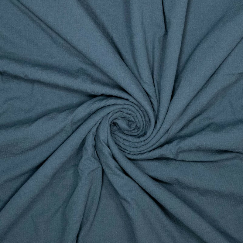 Tissu seersucker 100 % coton , légèrement gaufré, avec des fines rayures en relief. Très léger, fluide, respirant, ce tissu sera parfait pour coudre les vêtements estivales: chemisiers, blouses, jupes, tops.