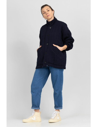 "I am Mage", une veste oversize entièrement doublée qui se décline en multiples styles. Elle peut être fermée avec des boutons ou une fermeture à glissière, et son encolure peut être finie avec un col, une capuche, ou laissée ronde. Elle propose également deux options de poches : passepoilées ou plaquées. Avec ses trois longueurs (bassin, genou, cheville), ses poignets élastiqués, et son cordon de resserrage en bas, elle est parfaite pour toutes les saisons. Créez une pièce unique qui reflète votre style avec le patron I AM Mage.