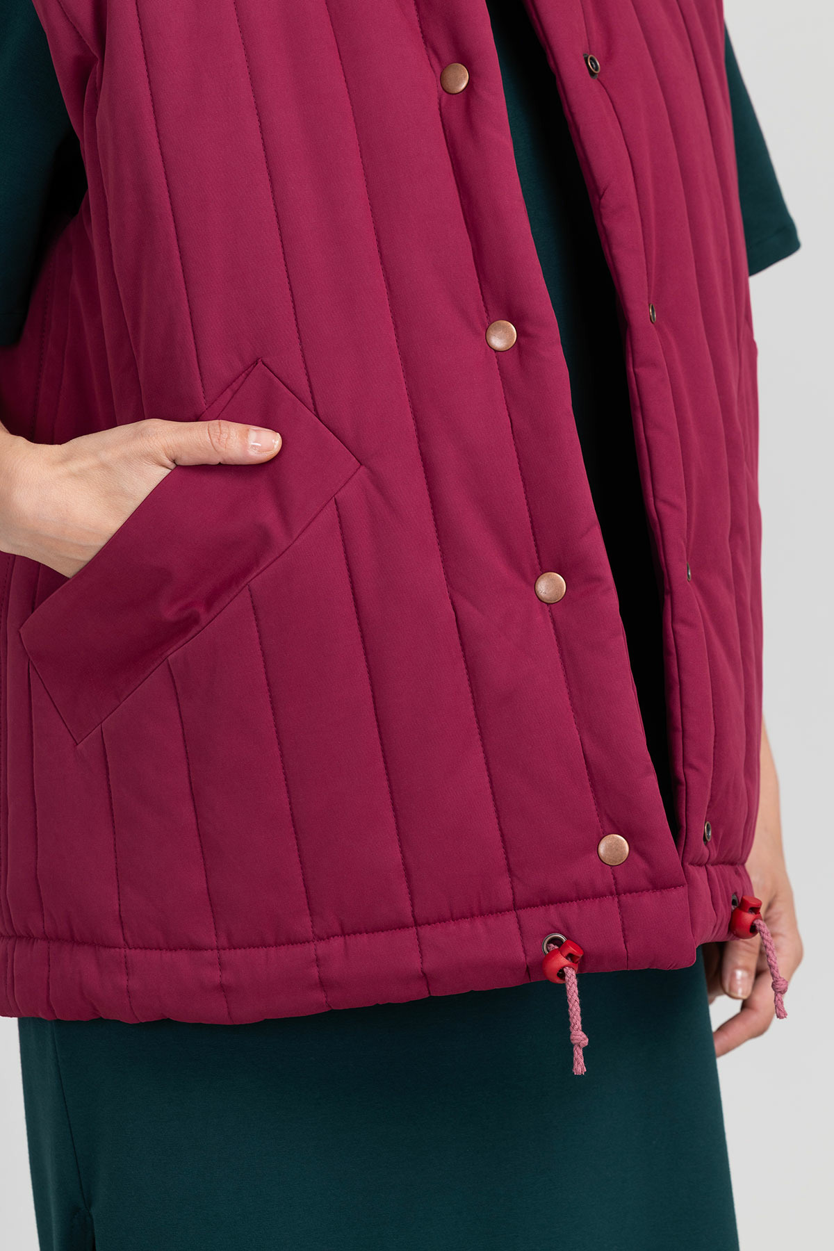 "I am Mira" est une veste sans manches oversize entièrement doublée, à la fois élégante et décontractée. Elle peut être fermée avec des boutons ou une fermeture à glissière, et son encolure peut être finie avec un col, une capuche, ou laissée ronde. Choisissez entre deux types de poches, passepoilées ou plaquées. Avec les trois longueurs (bassin, genou, cheville) et son cordon de resserrage, elle parfaite pour toutes les saisons.