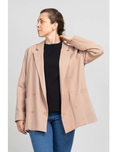 "I am Rose", une veste tailleur. Avec sa coupe légèrement oversize, elle incarne un style garçonne qui reste toujours tendance. Elle est à la fois confortable et élégante, une pièce incontournable pour une garde-robe moderne. Elle a un col tailleur, un double boutonnage, une poche passepoilée droite, et elle est entièrement doublée. Elle se décline aussi en manteau long jusqu’à la cheville, avec une poche passepoilée oblique. Toutes les versions de "I am Rose" se déclinent aussi en versions sans manches.