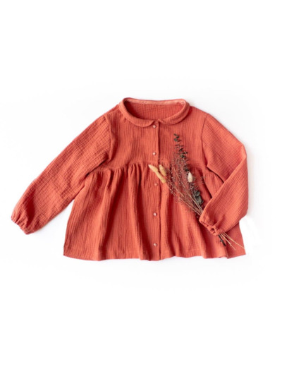 Coupe ample confortable. Manche chemisier. Manches courtes ou longues, élastiquées ou non. Ouverture totale devant. Biais à l'encolure. Option col claudine.