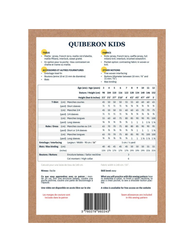Ce patron polyvalent permet de créer aussi bien un t-shirt qu’une robe marinière, avec 4 options de manches (courtes, 3/4, longues avec ou sans poignets) et 2 styles d’encolure (bateau ou col montant). Détails pratiques et charmants : ouverture à l’épaule pour un habillage facile et poche poitrine pour la touche finale.