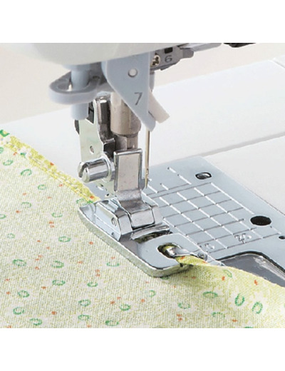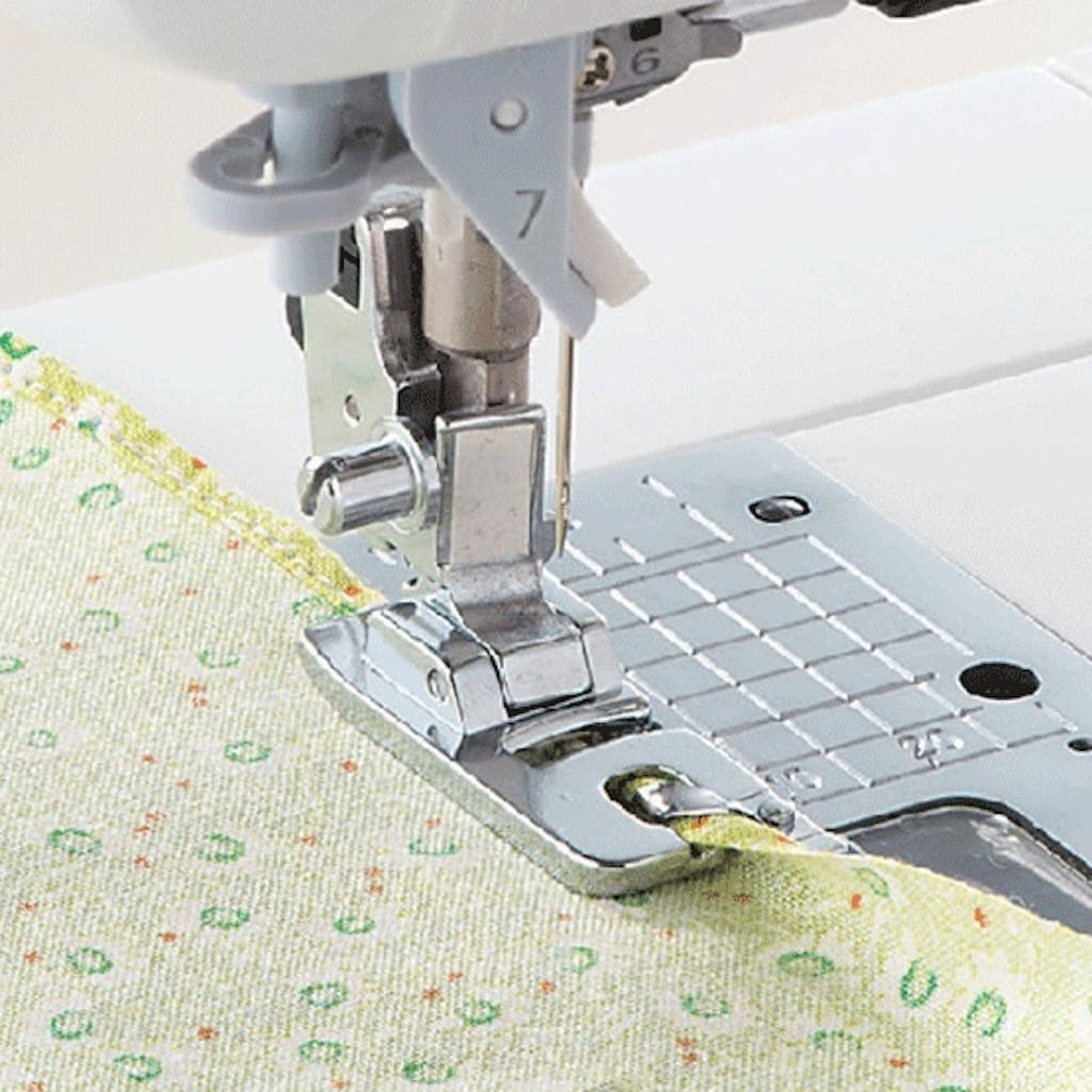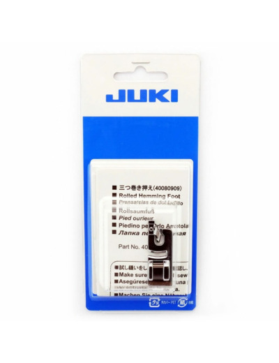 Le bord du tissu est ourlé et cousu au fur et à mesure qu’il est enroulé sur une largeur d’environ 3 mm.