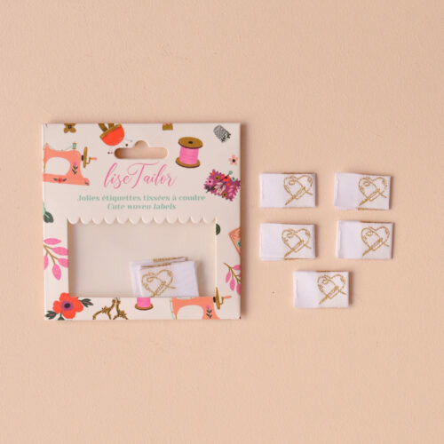 Lot de 5 étiquettes à coudre, avec un coeur doré