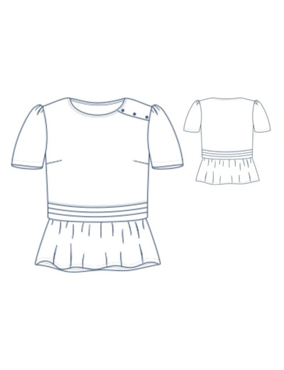 Rêverie est une adorable petite blouse à la coupe légèrement ample, féminine et confortable avec un délicat jeu de plis religieuses pour souligner la taille. L’épaule gauche est habillée d’une patte de boutonnage pour mettre en valeur vos plus jolis boutons.
