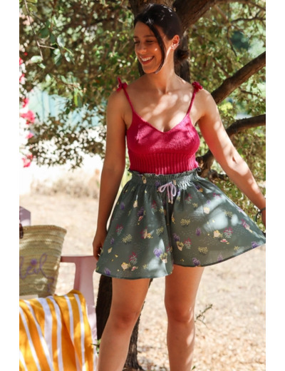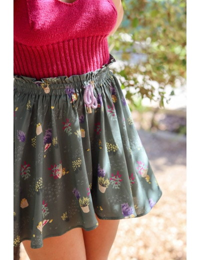 Très joli tissu viscose imprimé de motif "Paniers" sur le fond Kaki. Doux et fluide, ce tissu sera parfait pour réaliser de jolies robes, blouses, jupes ou chemisiers.