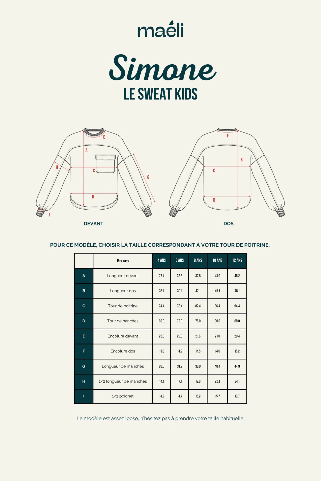 Maéli Paris – Patron Couture Enfant Sweat "Simone Kids" – Du 4 Au 12 Ans