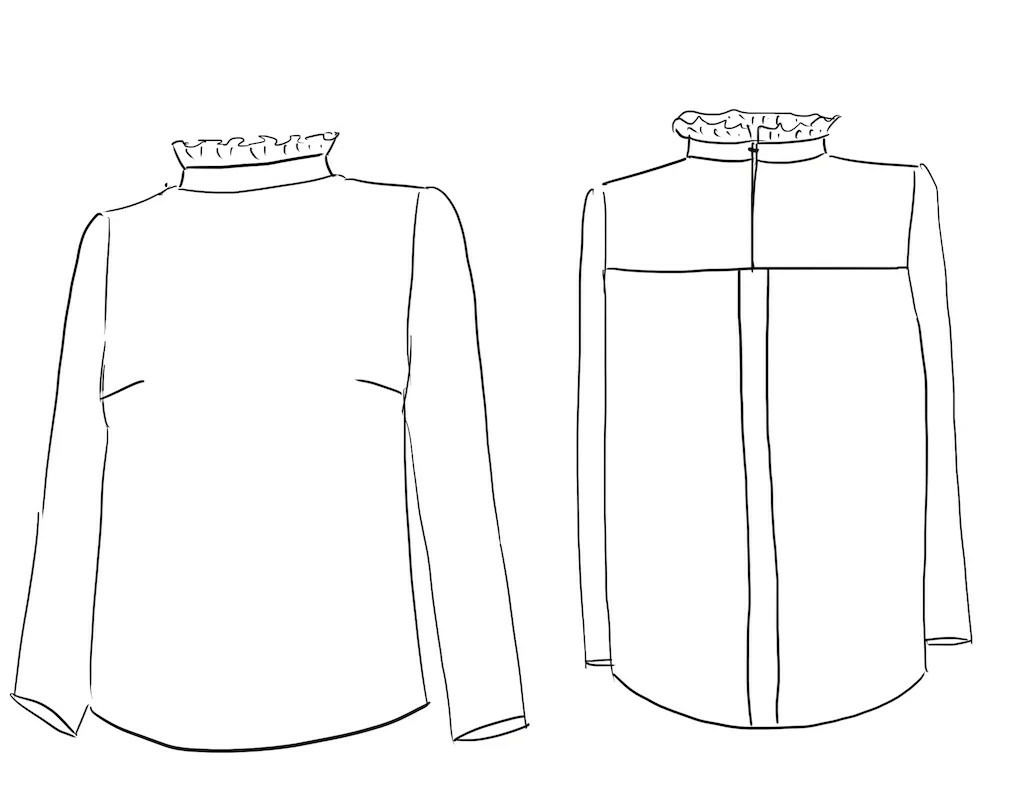 DAHLIA est une blouse à col froncé qui se donne des airs de chemises, avec ses manches longues et son joli pli rond qui vient agrémenter le dos du modèle. Sa ligne est légèrement appuyée sans être moulante avec ses pinces poitrines. Le mix parfait entre la blouse et le chemisier, une allure classique à venir bousculer.