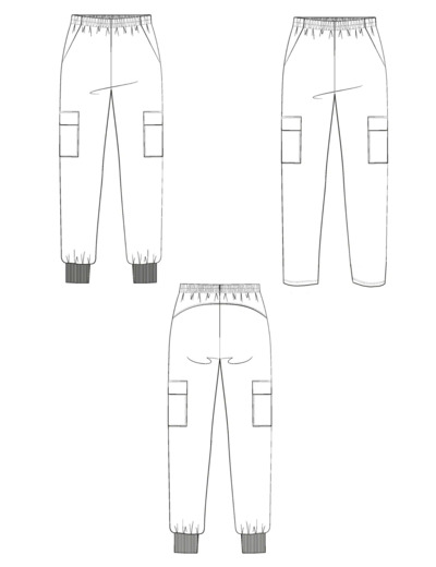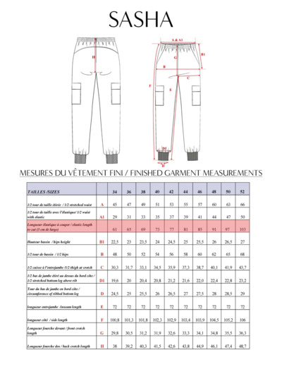 - Niveau de couture : DÉBUTANT, les points techniques sont la réalisation de la poche italienne qui se prolonge sur la taille, les poches plaquées à rabat, la taille élastiquée sous coulisse, et la pose d’un bas de jambe en bord côte.