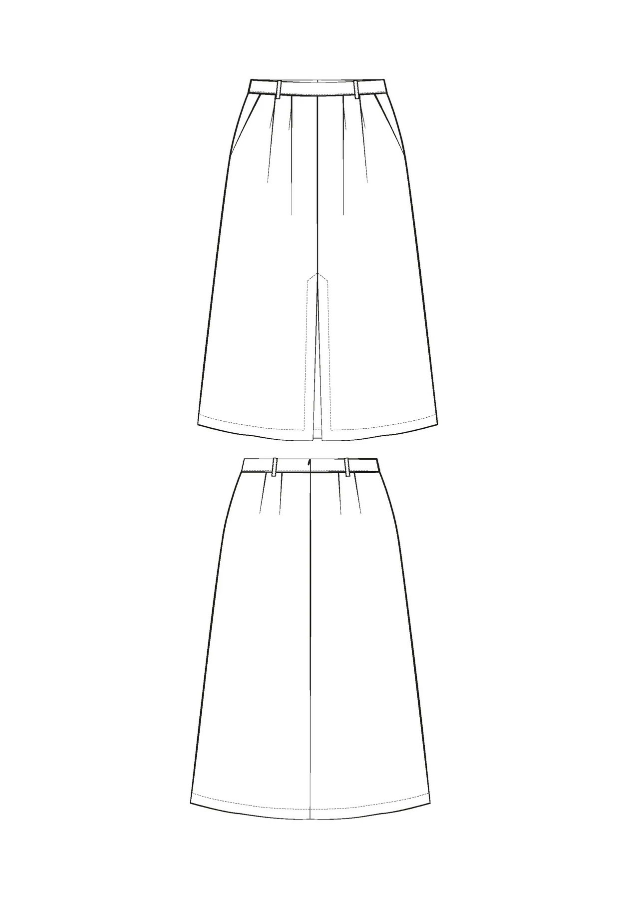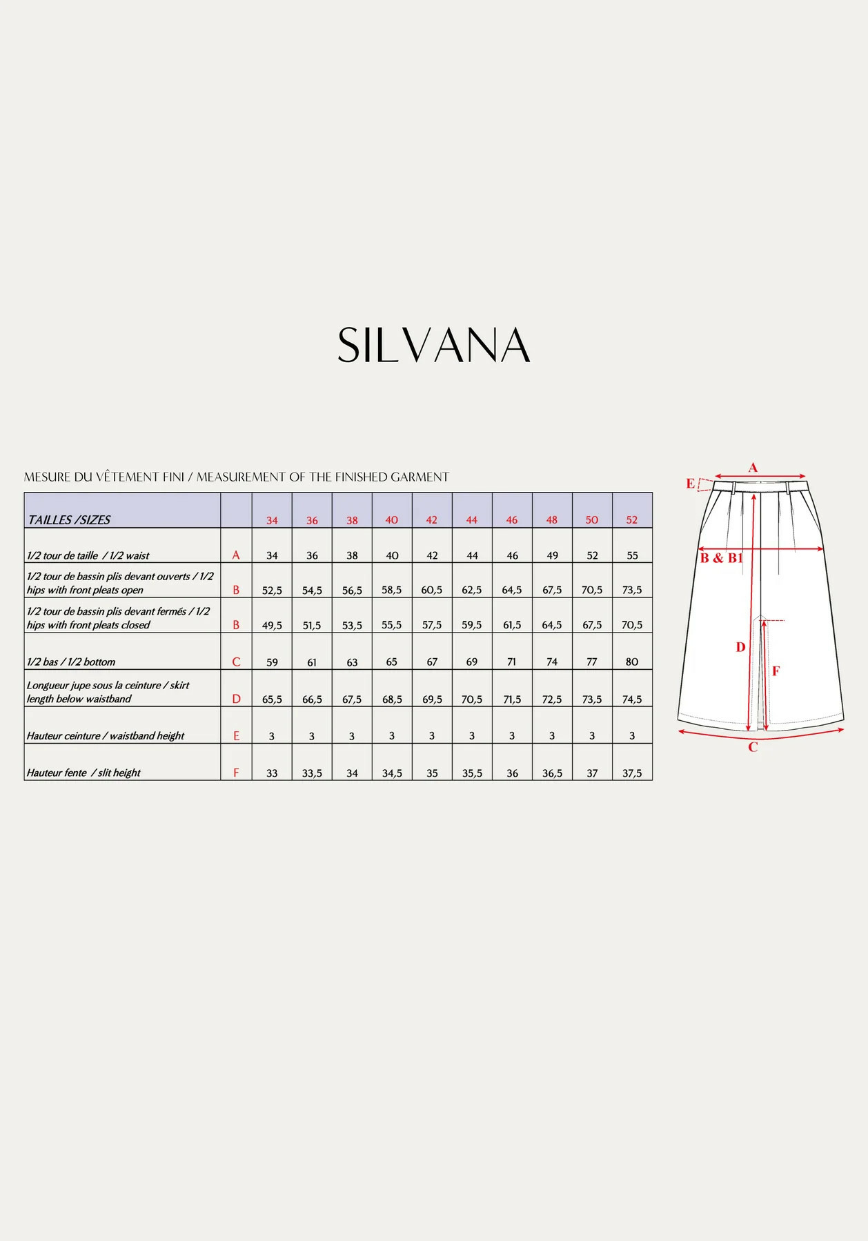 La jupe Silvana joue avec les codes du vestiaire masculin et réinterprète de manière audacieuse et ultra féminine le pantalon de tailleur : coupe légèrement évasée et longueur midi intemporelle et facile à adopter, haute fente frontale pour l’aisance et l’allure, poches italiennes et ceinture fine avec des passants pour une élégance assumée. Le dos est fermé par un zip invisible et appuyé par des pinces pour un tombé parfait.