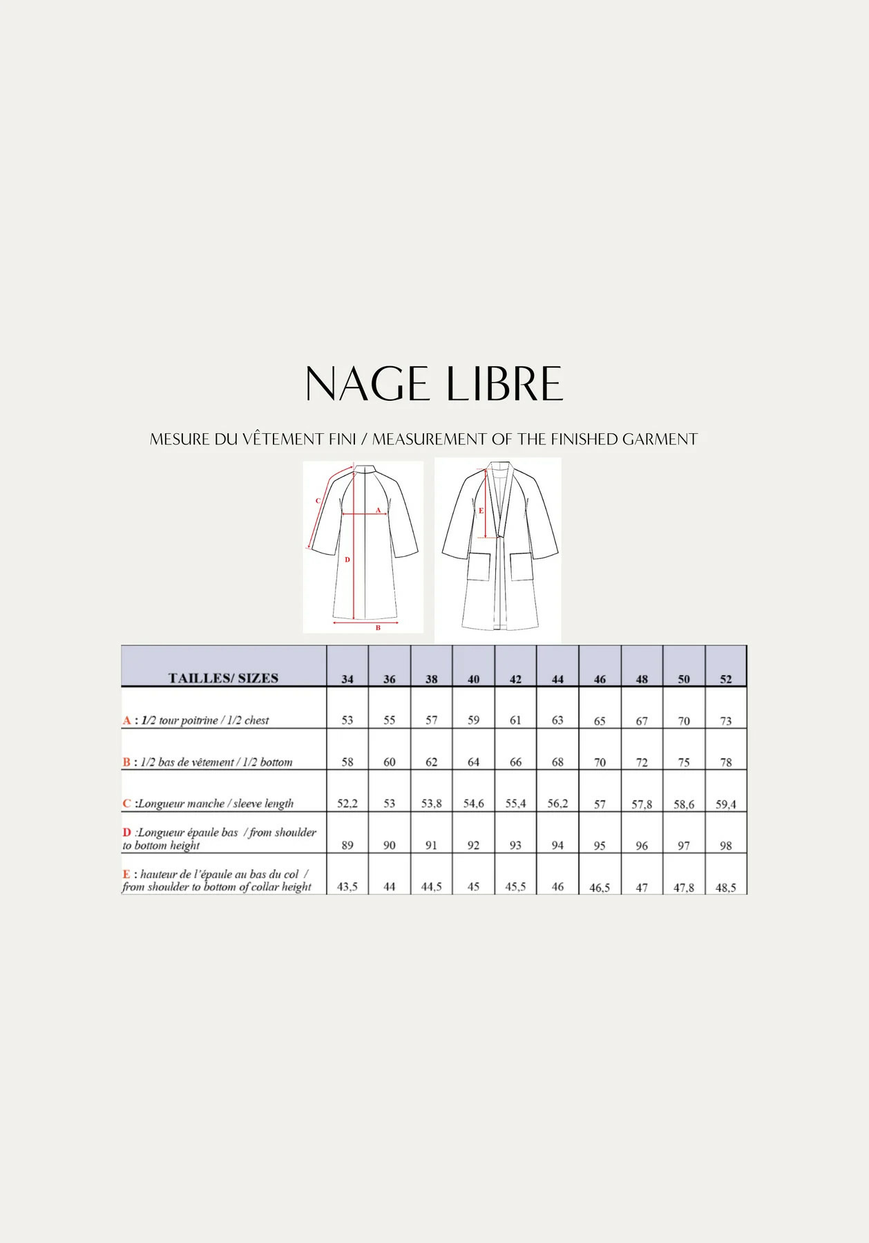 - Tailles: FR 34 – 52