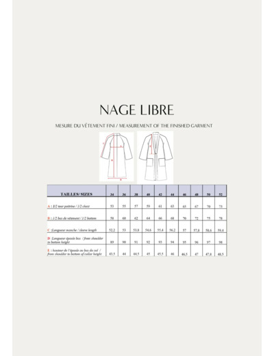 Maison Fauve - Patron Couture Veste "Nage Libre" Du 34 Au 52