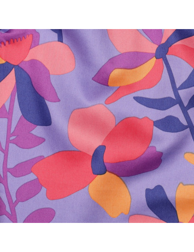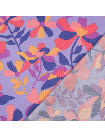 Le tissu Cloverdale de Nerida Hansen se décline ici dans une version vibrante et audacieuse, où un fond bleu indigo met en valeur de grandes fleurs stylisées dans des tons de corail, rose, orange et bleu. Un imprimé à la fois artistique et joyeux, idéal pour des créations lumineuses et modernes.