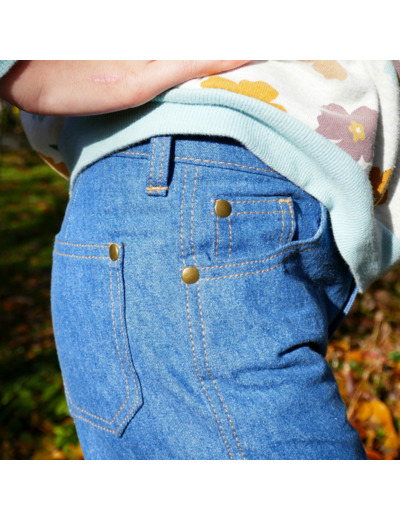 Le patron Django est conçu pour coudre un jean ou un pantalon cargo pour fille du 2 au 16 ans. Il associe confort, style et nombreuses options de personnalisation.