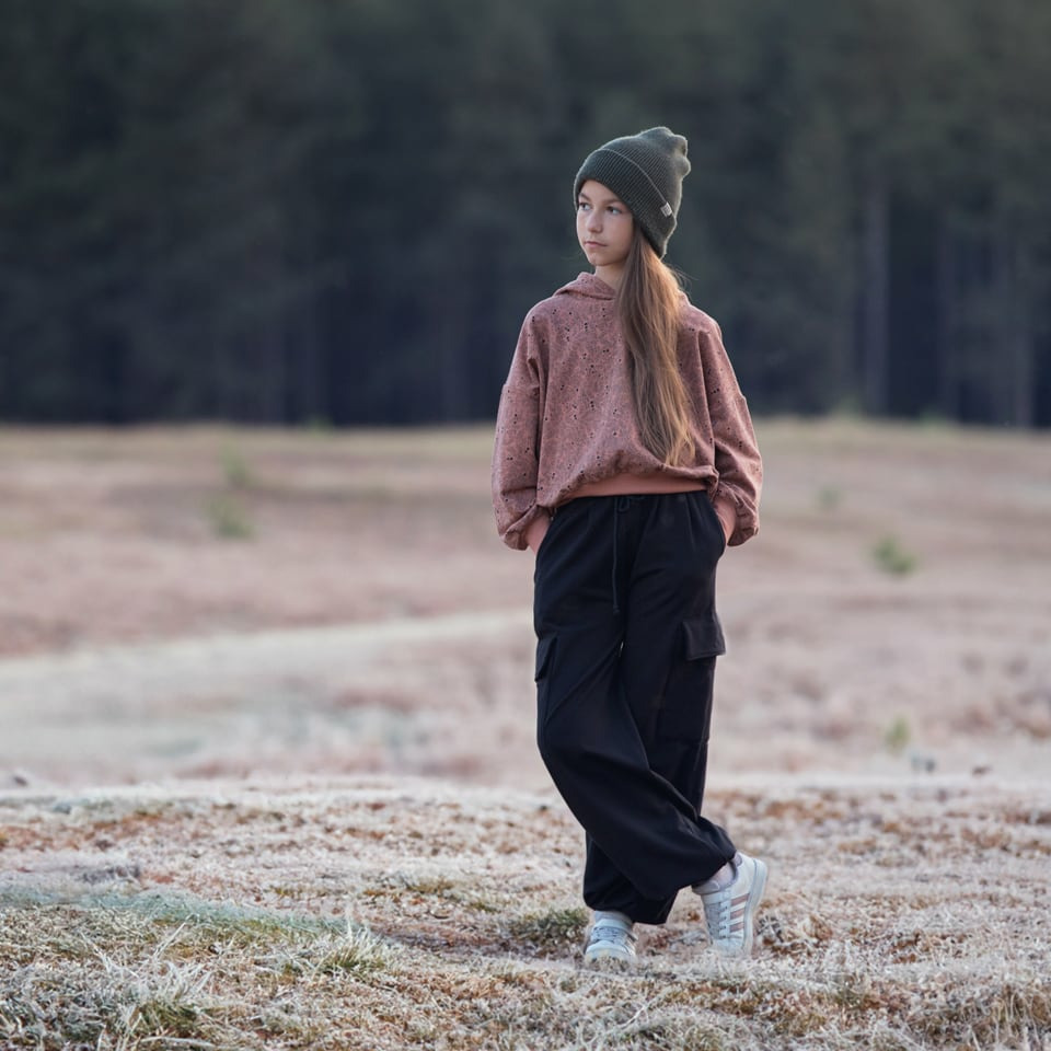 Utiliser/couper les bords côtes à une largeur de 75% par rapport à la largeur du vêtement.