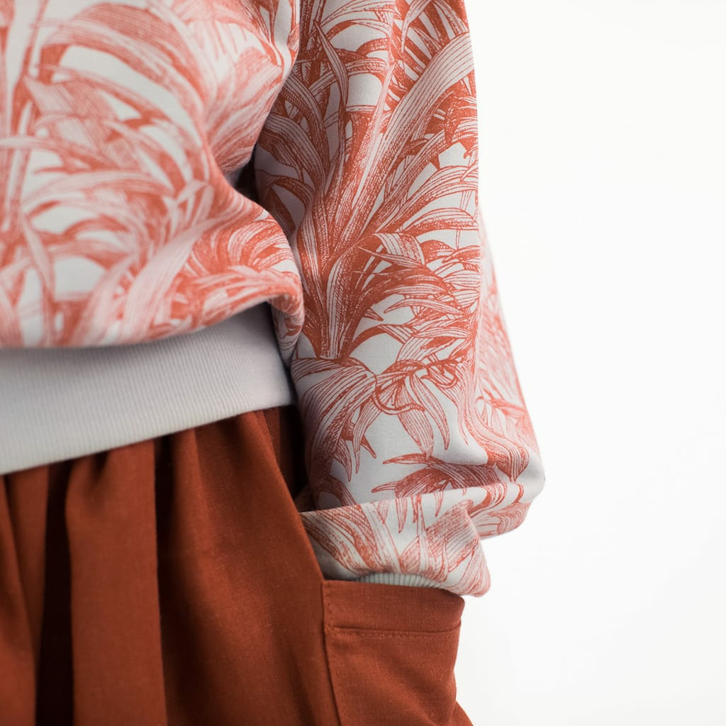 Utiliser/couper les bords côtes à une largeur de 75% par rapport à la largeur du vêtement.