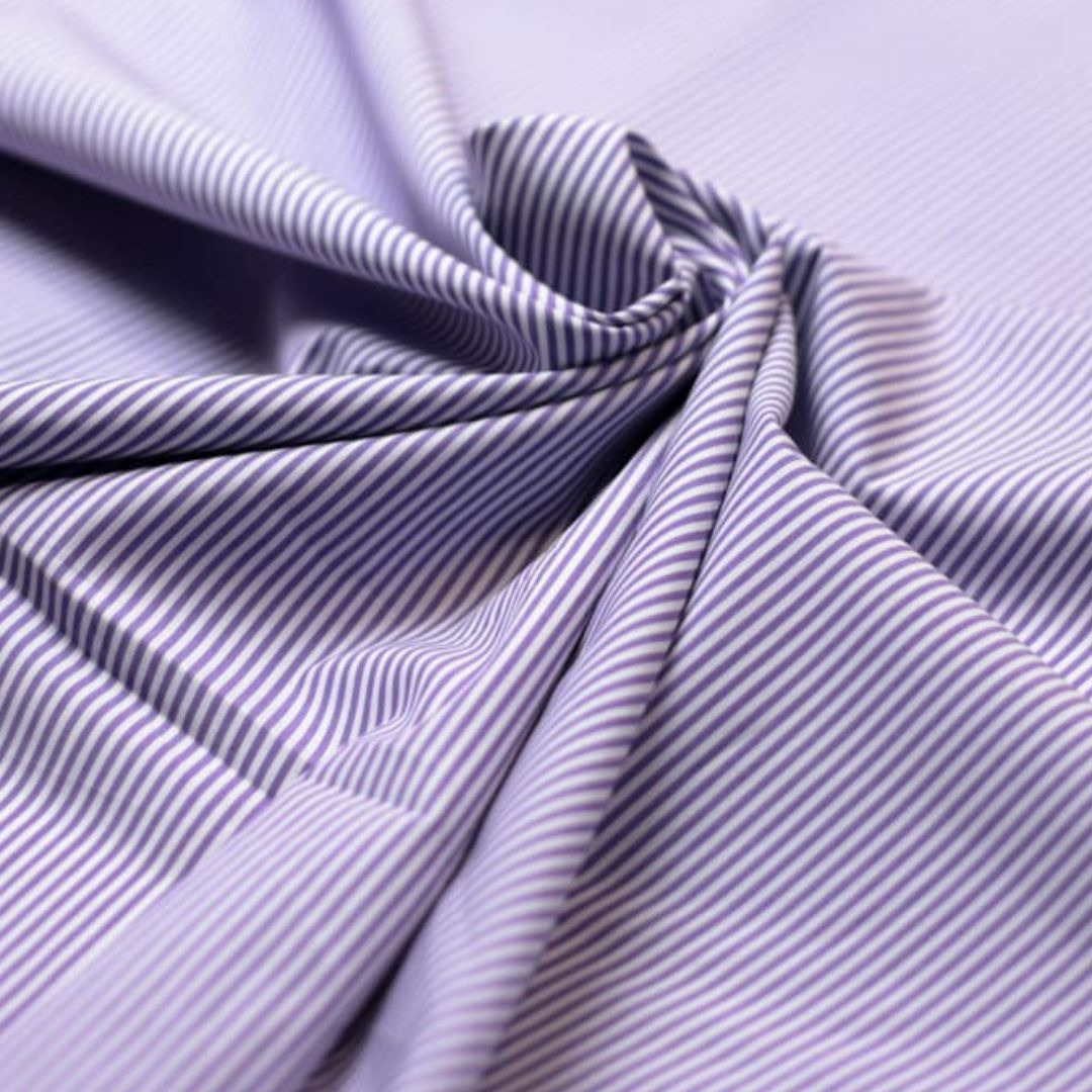 Apportez élégance et raffinement à vos créations avec ce coton de chemise fil à fil à rayures fines violettes et blanches. Léger, respirant et agréable au toucher, ce tissu est idéal pour la confection de chemises, blouses, robes ou encore accessoires raffinés.