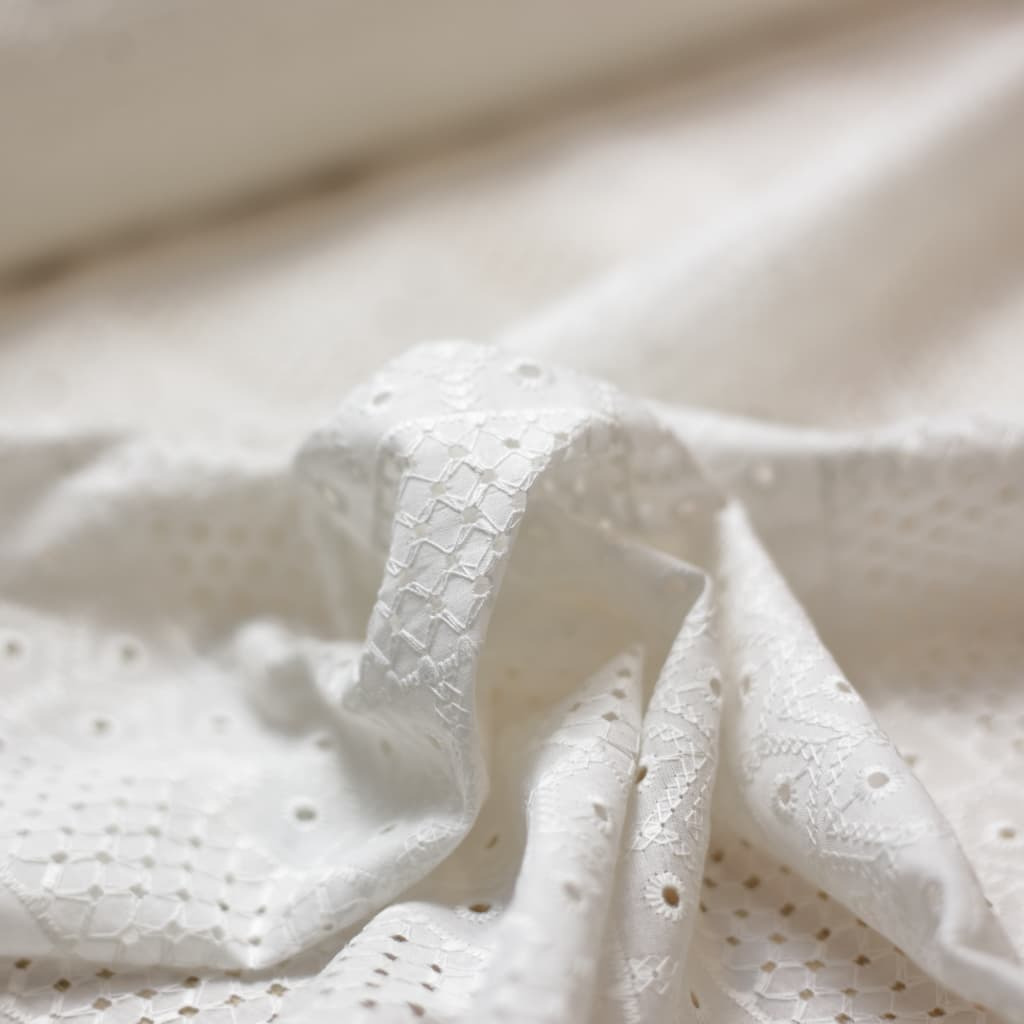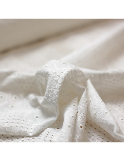 Ce tissu broderie anglaise sera idéal pour la robe de première communion, la robe de bâpteme ou toute autre occasion spéciale.