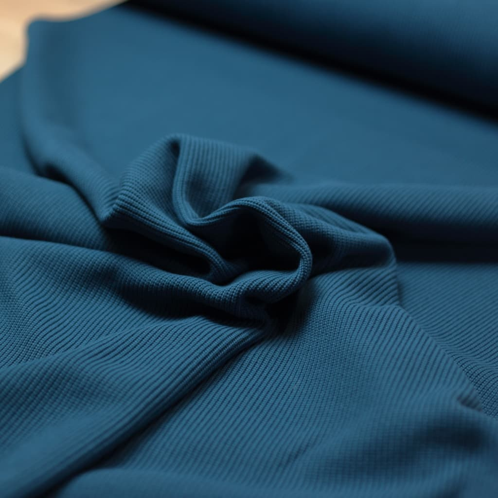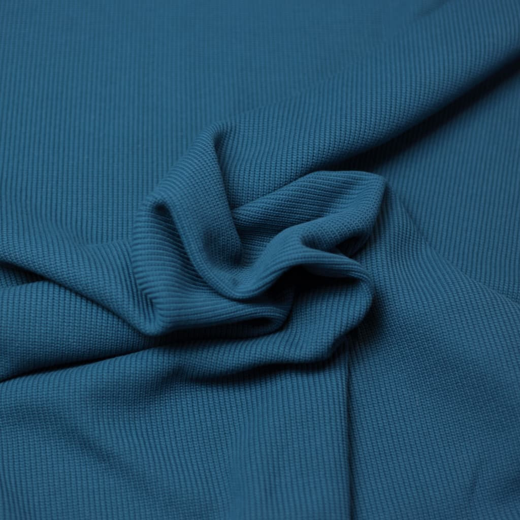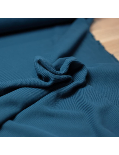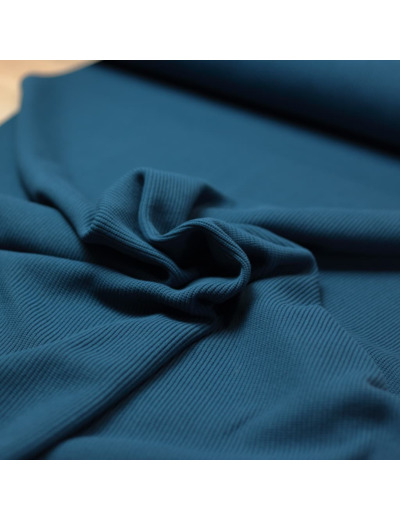 Sélection Coup de Coudre - Tissu Maille de Coton Côtes Fines Couleur Bleu Canard