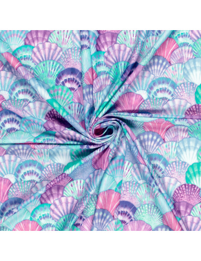 Tissu en polyester recyclé et polyamide extensible dans le deux sens . Convient parfaitement pour coudre un maillot de bain mais aussi un legging , un body ou un justaucorps , ou une brassière.