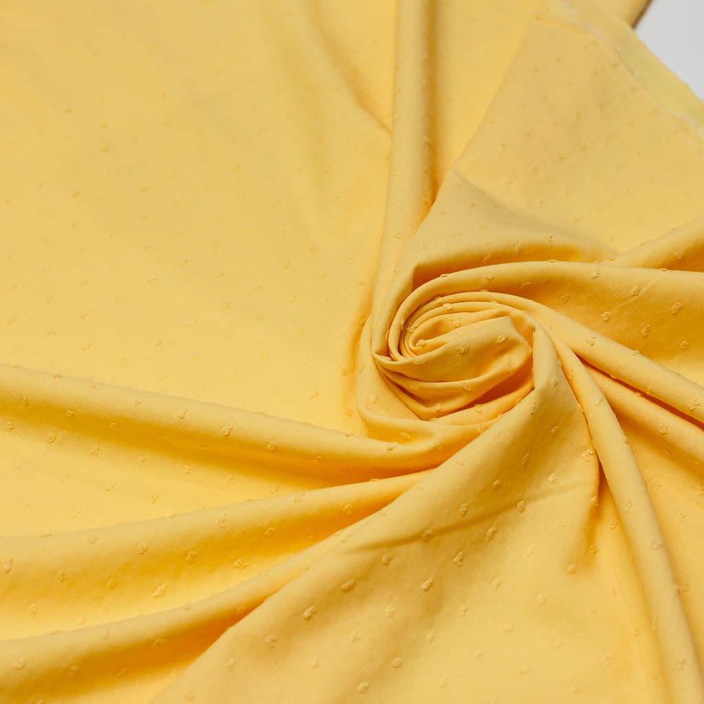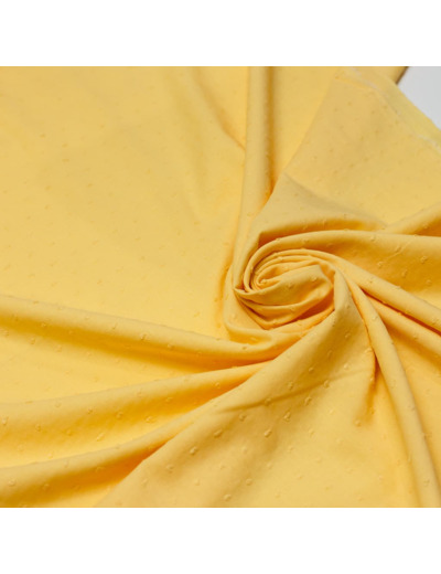 Tissu 100% coton d'une superbe qualité voile plumetis jaune poussin. Fabrication européenne.