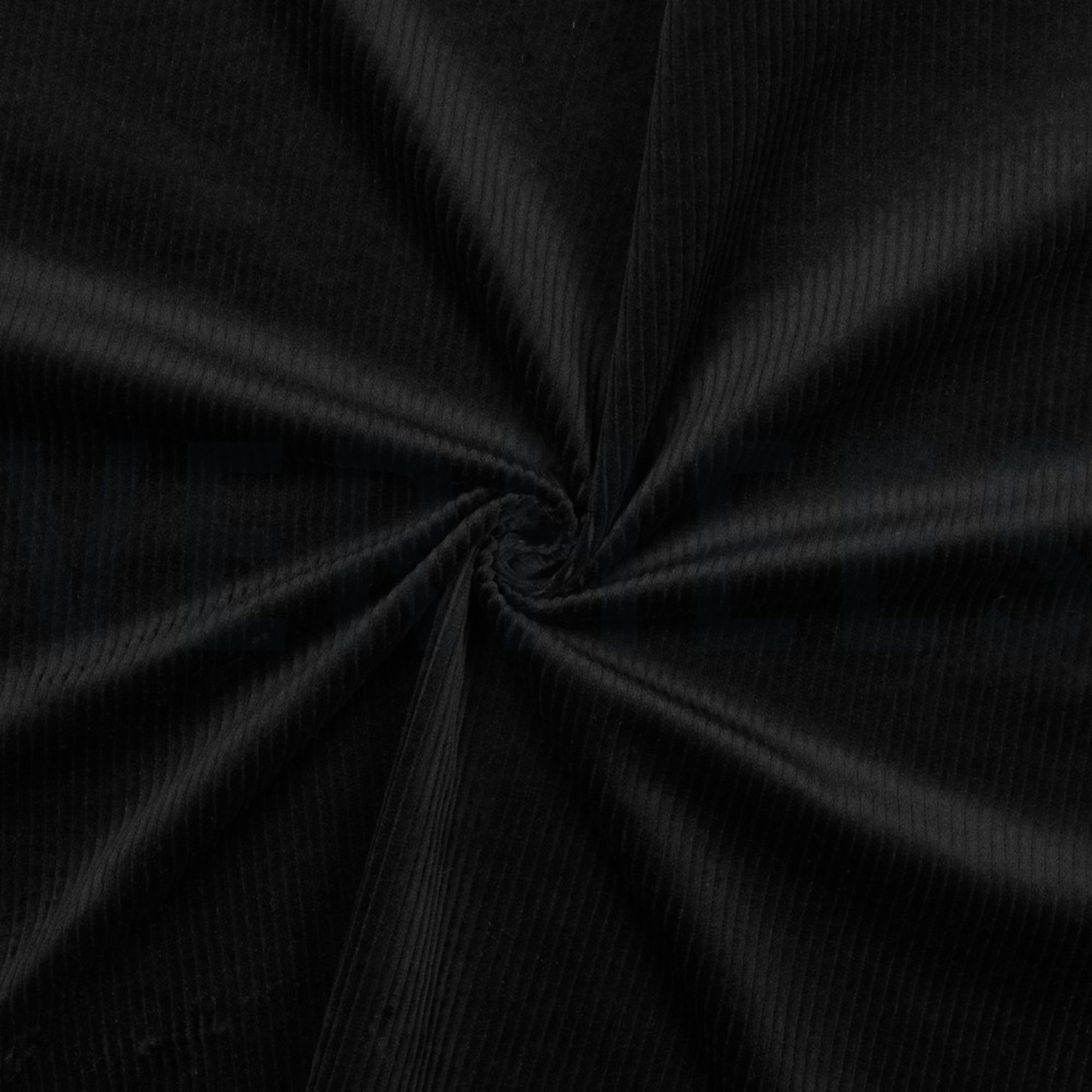 Découvrez ce tissu velours côtelé lavé extensible d’une grande souplesse, dans une élégante couleur noir. Ses côtes moyennes de 4 mm lui confèrent un style intemporel et polyvalent, parfait pour toutes vos créations d’habillement et d’accessoires.