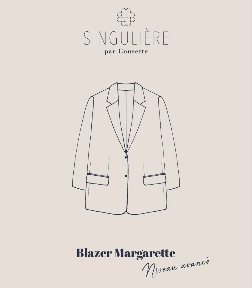 Margarette est un blazer à simple boutonnage qui reprend les codes classiques et caractéristiques de cette pièce emblématique : Col tailleur, poches passepoilées à rabat et manches montées avec épaulettes.