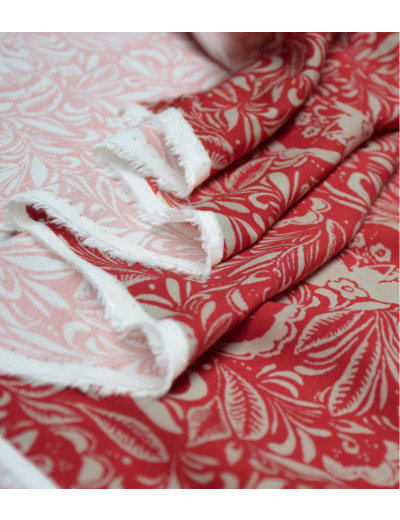 Popeline de viscose fluide et douce, Maarinsky dévoile un motif floral rouge brique relevé de tracés beiges délicats, comme une estampe ancienne. Inspiré des jardins sauvages, ce tissu est une ode à la liberté créative : robes légères, blouses raffinées, jupes amples ou chemisiers subtils. Facile à coudre et agréable à porter, il accompagnera vos créations d’automne avec élégance et caractère.