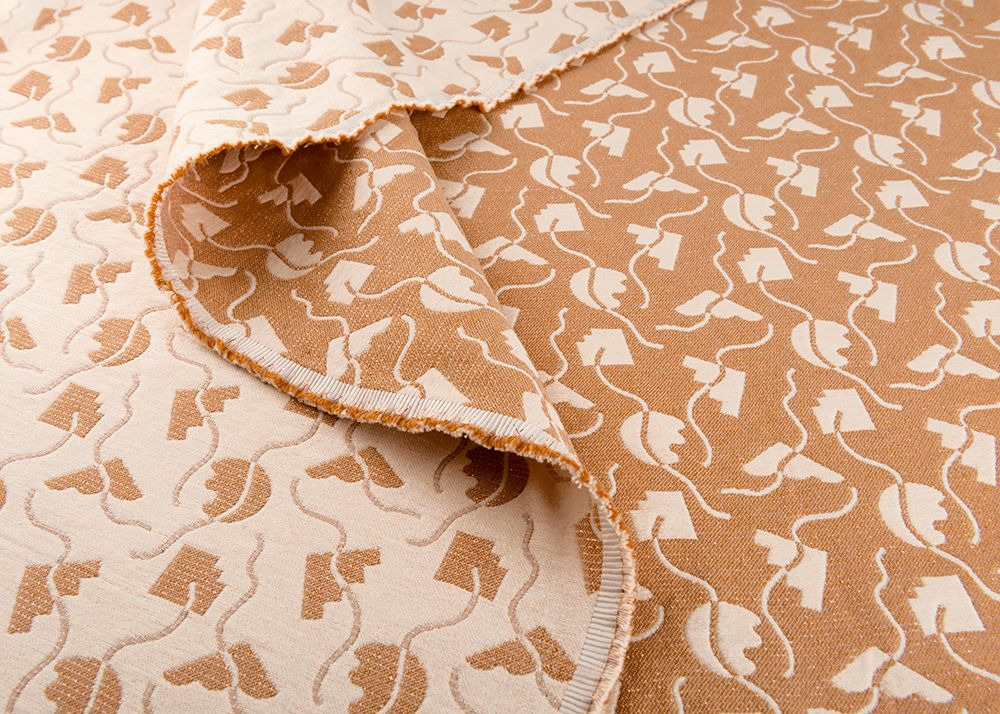Succombez à ce tissu de couleurs champagne, caramel et rose cuivré.