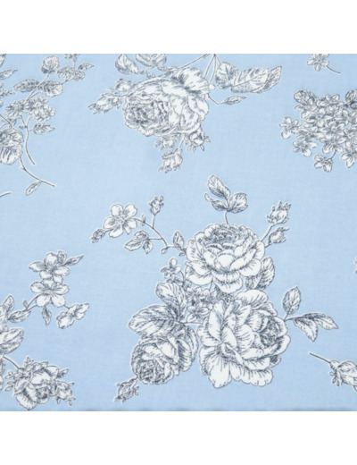 Tissu Patchwork "Quilt Gate" à Motif Gros Fleurs Sur le Fond Bleu