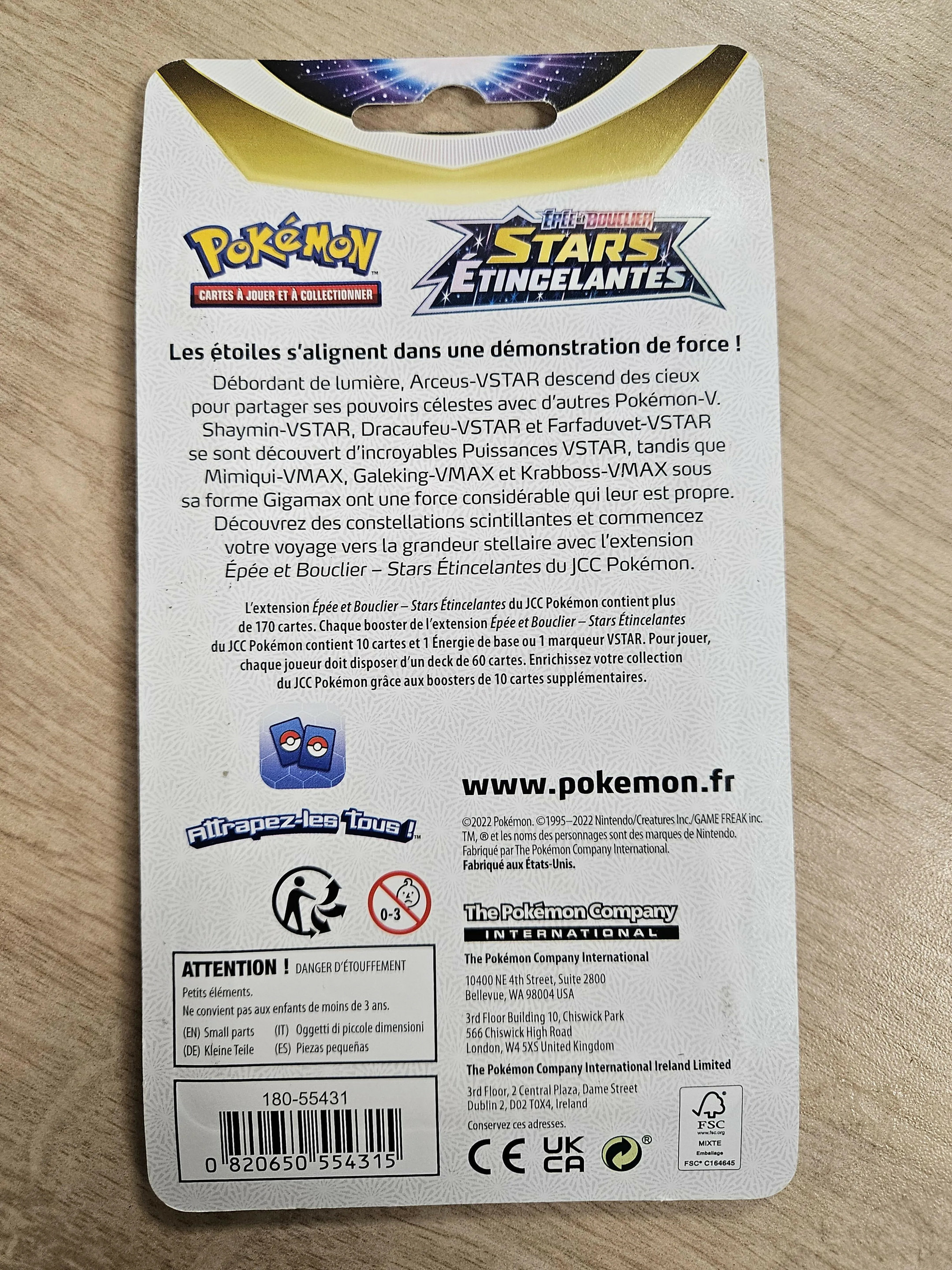 Booster Blister Pokémon EB09 Epée bouclier stars etincelantes