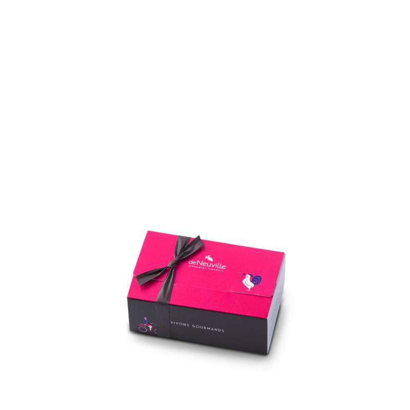 Retrouvez avec cet assortiment de chocolats au lait, noirs et blancs une véritable palette de saveurs : des ganaches onctueuses, des pralinés torréfiés à cœur, pâtes d'amandes, nougatines et bien d'autres à découvrir. Créés et fabriqués en France à partir des ingrédients les plus fins, les chocolats de Neuville raviront tous les palais avec des recettes classiques comme des plus originales. Toute la force et la douceur d’un chocolat de qualité pour succomber à la tentation et partager un agréable moment chocolaté. Un joli cadeau chocolaté pour soi ou pour ceux qu’on aime. Créez l'effet de surprise en choisissant la livraison de chocolats à domicile. Vos proches recevront un ballotin de chocolats accompagné d'une carte message personnalisé.