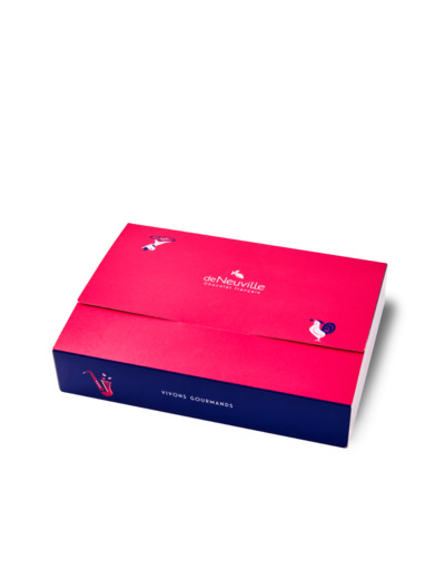 Ingrédients : Sucre, pâte de cacao, beurre de cacao, LAIT en poudre entier, AMANDES, NOISETTES, LAIT en poudre écrémé, beurre concentré (LAIT), sirop de glucose, crème stérilisée (LAIT), sirop de sucre inverti, humectant : sorbitol, cacao maigre en poudre, huile de tournesol, pâte de figues, graines de courges, noix de coco râpée, LAIT concentré écrémé sucré, poudre de lactosérum doux (contient du LACTOSE), caramel (sucre, eau), émulsifiant : lécithines (SOJA), purée de framboises, purée de cassis, pépites de cassis (jus de cassis), poudre de mûres ( jus de mûres concentré), extrait de chicorée concentré, café soluble 100% arabica Equateur, éclats de fèves de cacao torréfiées, épices, piment d'Espelette, fleur de sel de Guérande, sel, farine de BLE, farine de riz, farine de maïs, amidon de BLE, malt d'ORGE, blanc d'OEUFS en poudre, jus de citrons, jus d'oranges, arôme naturel de vanille, citron et noix de coco, anti oxydant : extrait de romarin, conservateur : sorbate de potassium, enzyme : invertase.| Marque | de neuville chocolat français |