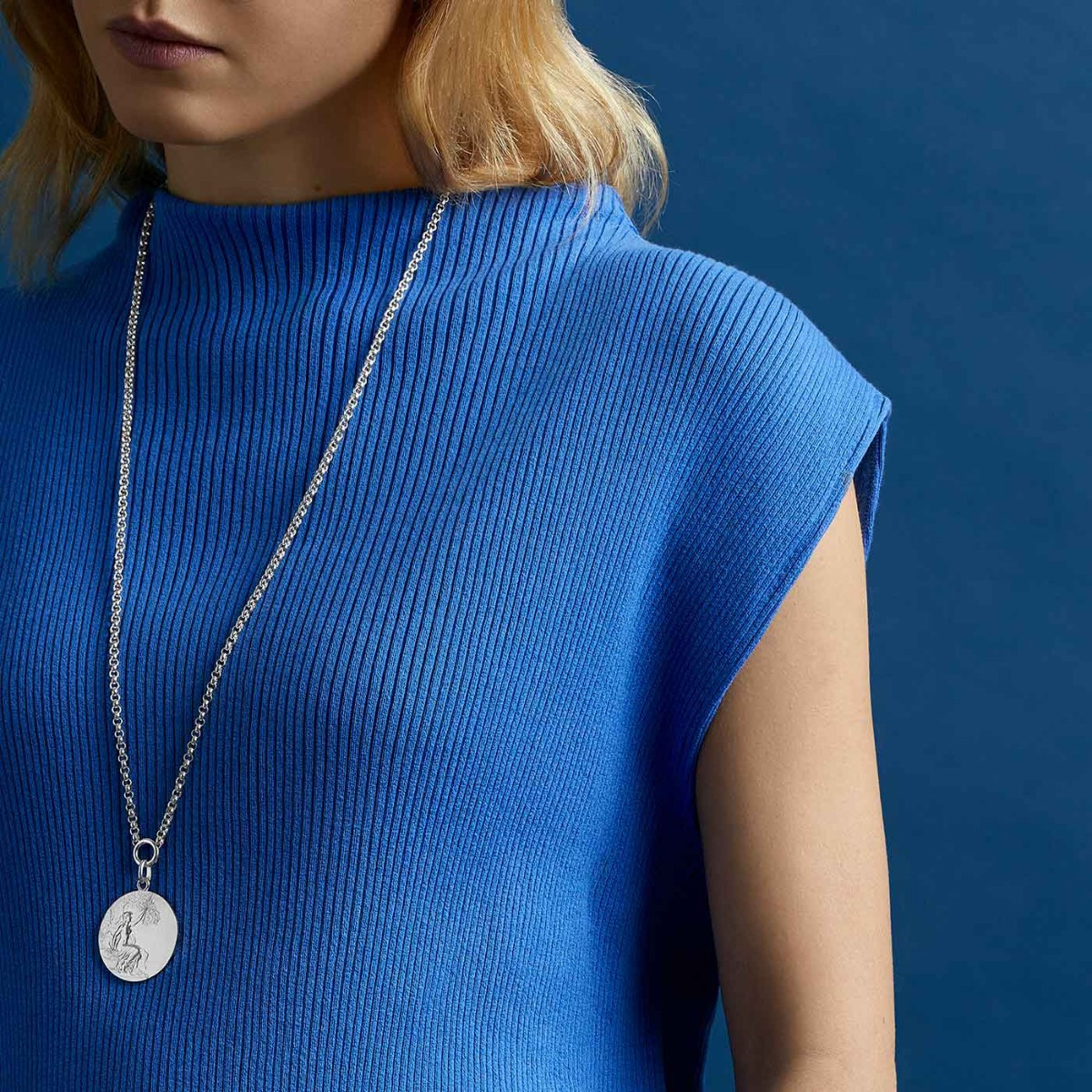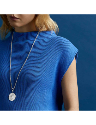 Cette longue chaîne jaseron en argent mesure 80 centimètres de longueur. Son anneau central ouvrant vous offre la possibilité d'y glisser plusieurs médailles et pendentifs. Son poids d'argent moyen est de 30,85 grammes.