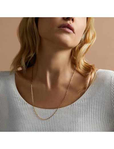 Partenaire du quotidien, découvrez cet élégant collier chaîne en or jaune 18 carats. Celui-ci mesure 60 centimètres et se compose d'une suite de maillons à la forme rectangulaire.