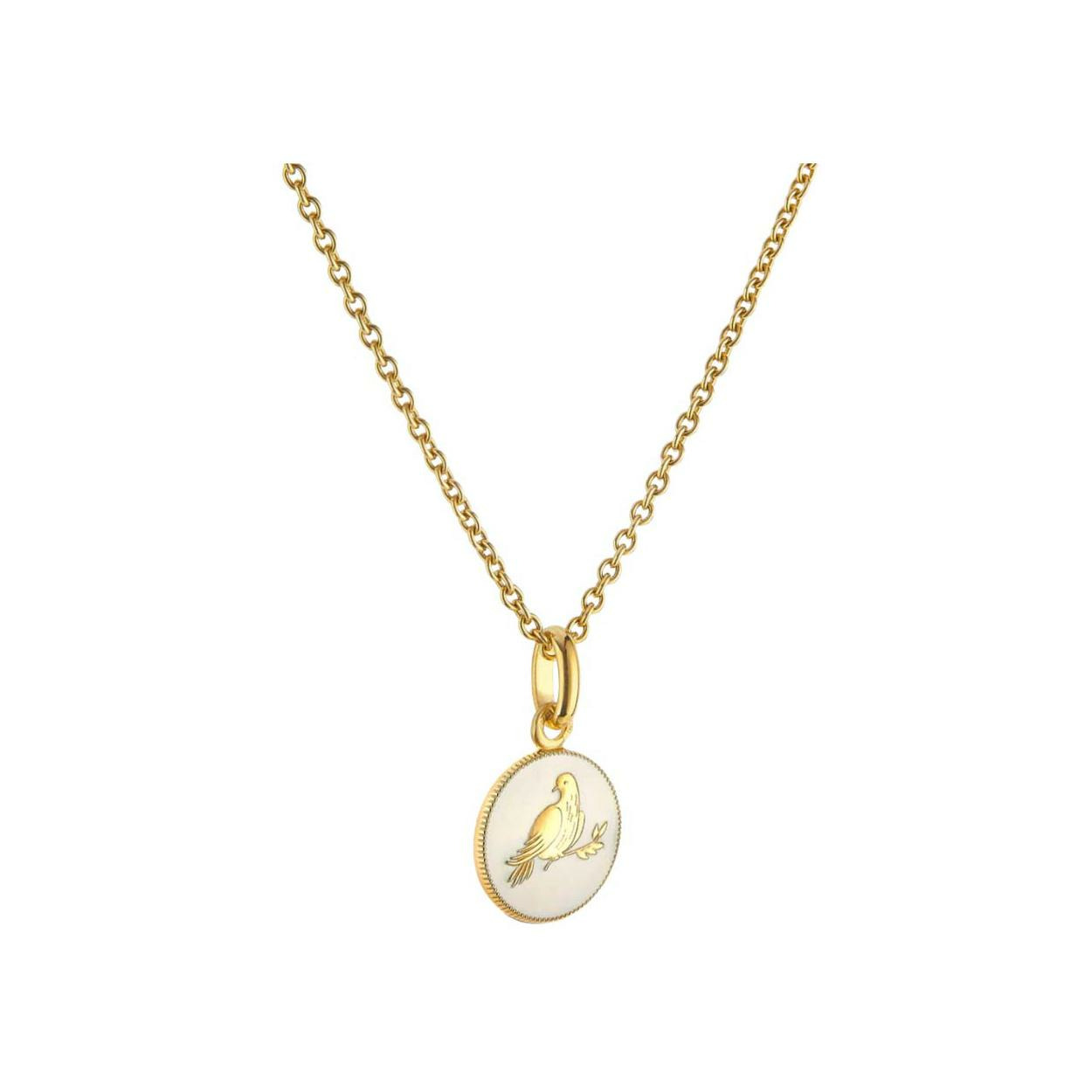 Médaille Arthus Bertrand Ma Mini Médaille Colombe en or jaune et laque ivoire, 10 mm