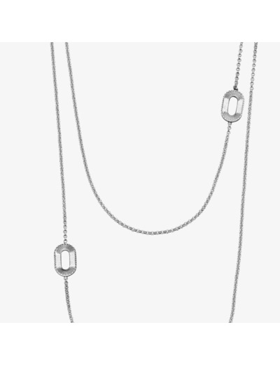Inspiré de la texture de notre ruban honorifique, découvrez ce sautoir en argent 925/1000. Son doux relief évoque le jeu de côtes de ce ruban « gros-grain ». Le motif mesure environ 2 centimètres de hauteur et 1,3 centimètre de longueur. Son poids d’argent est de 55 grammes.