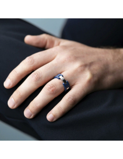 Bague Herbelin Cap Camarat en acier poli et céramique bleue sablée RCC8CBAB
