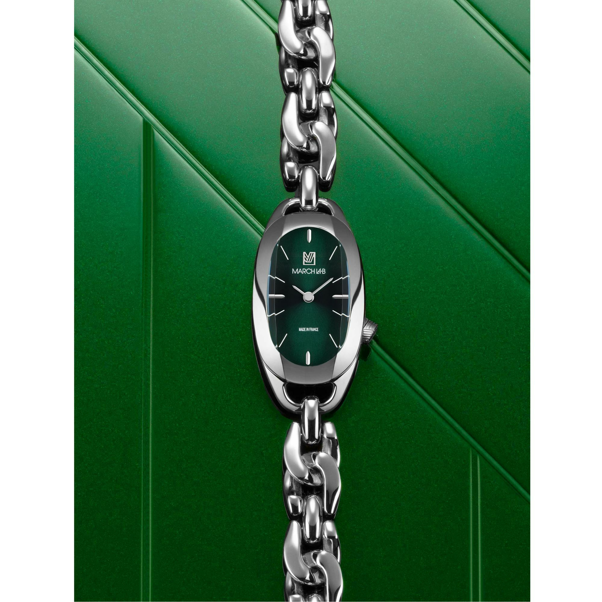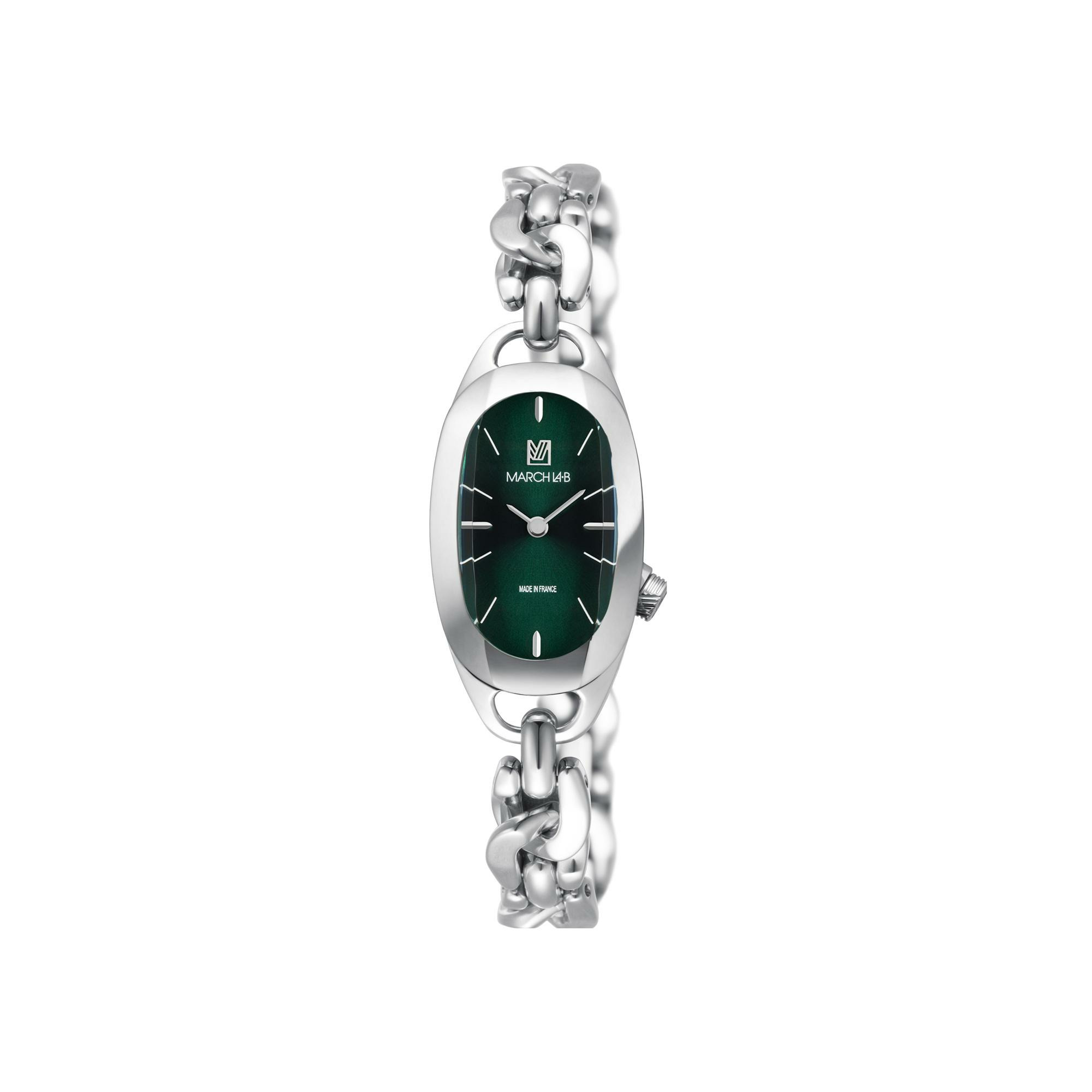 Montre March LA.B OBLONGUE ELECTRIQUE 20 MM - FOREST - Gourmette Acier OBLONEFTSG10
