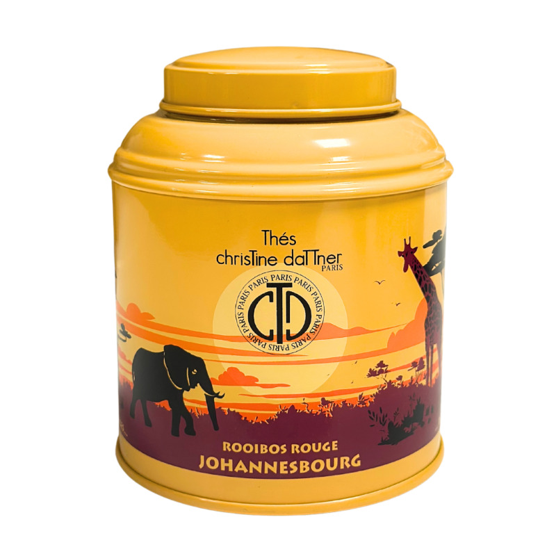 Rooibos rouge aromatisé à la pêche, à l'orange, aux fruits rouges, parsemé d'écorces et de morceaux de fruits.