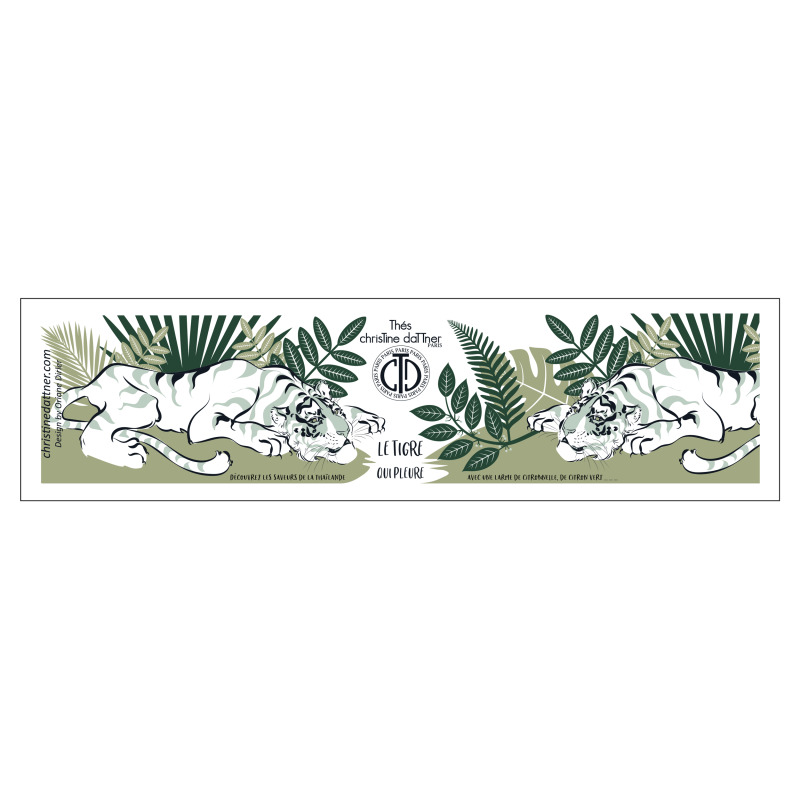 Thé vert sencha de Chine aromatisé à la citronnelle, avec morceaux de gingembre, curcuma et pointe de citron vert. La légende raconte que devant ces incroyables saveurs thaïlandaises, le tigre se serait mis à pleurer...