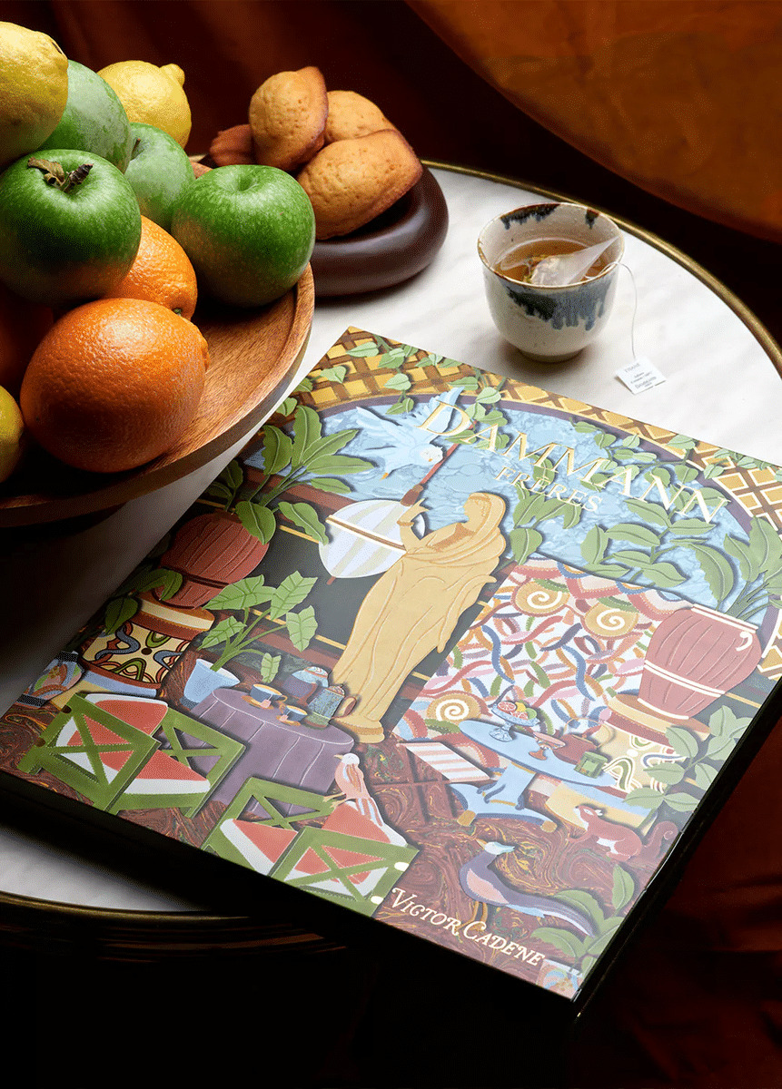 Un calendrier de l’Avent au décor imaginé par l’artiste Victor Cadene qui nous invite à savourer la période de l’Avent avec des goûters gourmands autour d’une sélection de thés et d’infusions. 25 sachets Cristal® enveloppés pour un assortiment de 24 saveurs ou origines avec, en sélection, certains incontournables mélanges de Noël de la maison mais également des nouvelles créations toutes plus subtiles et inventives. Victor Cadene est un artiste décorateur aux multiples pratiques qui réalise des scènes décoratives en deux dimensions à partir de ses dessins qu’il découpe et assemble en collages. Plus que la précision du trait, c’est la spontanéité de la composition et l’émotion de la couleur, essentielle à son travail qu’il recherche. Il les veut opulentes et théâtrales, oscillant entre exubérance et harmonie. Ses créations sur papier sont l’occasion de nombreuses collaborations qui lui permettent d’explorer les différents procédés des arts décoratifs. Il répond à ces commandes depuis son atelier parisien, où chaque élément est réalisé à la main, du dessin à la mise en couleur, en passant par le découpage et le collage.